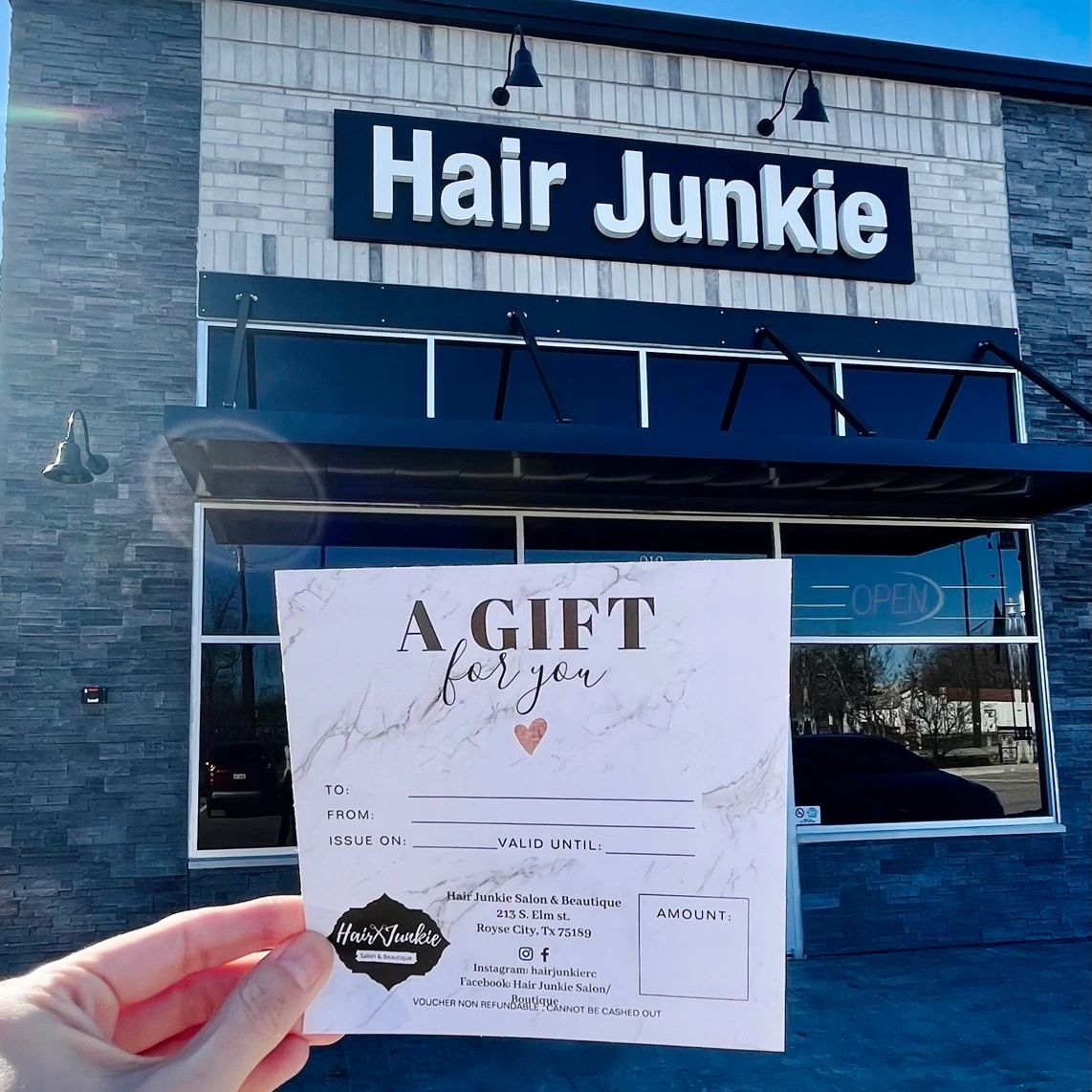Make someone's day with a Hair Junkie Gift Card. They can choose from our range of hair services with your favorite or products and clothes from our boutique.